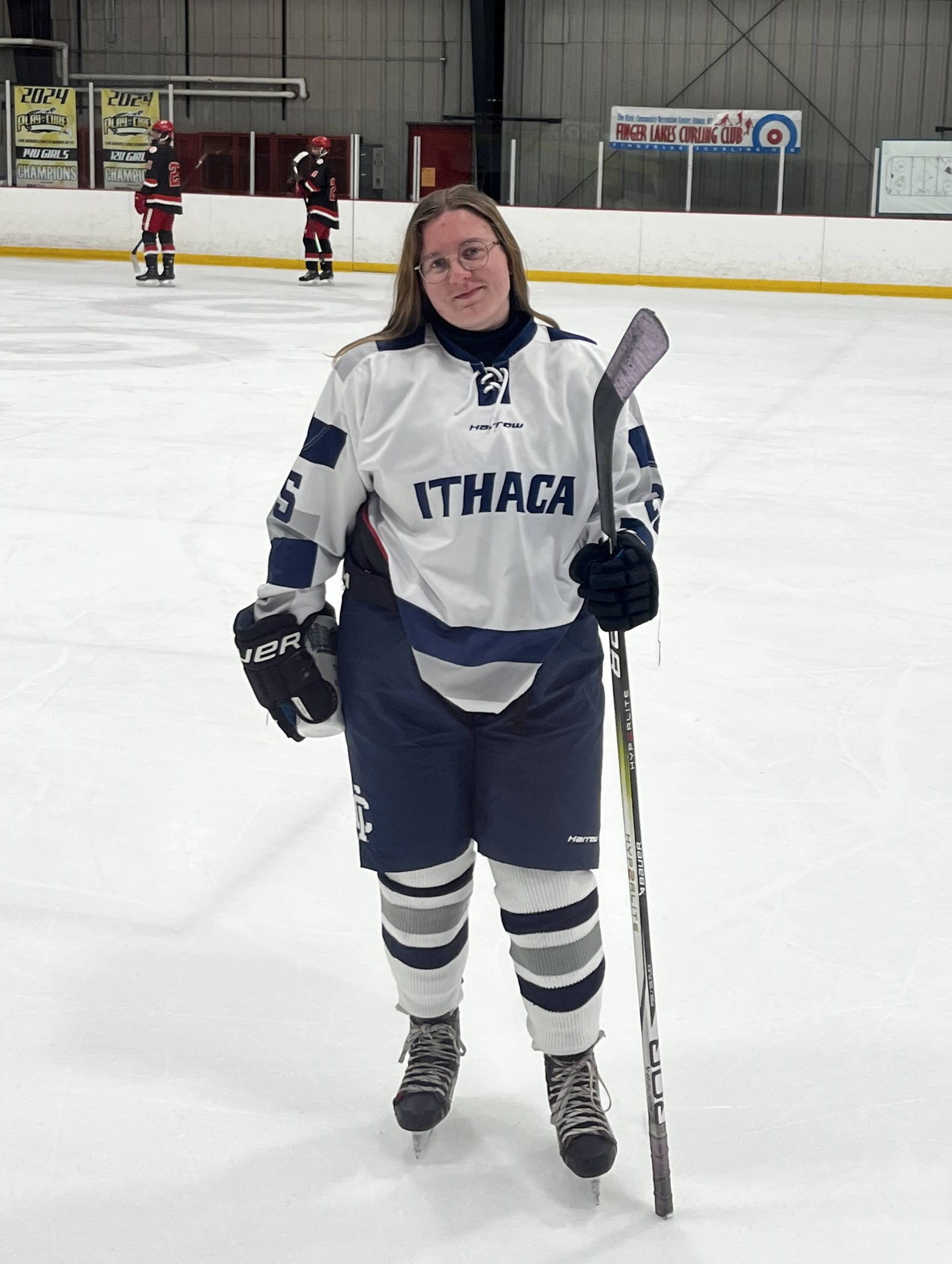 I have been playing all-girls hockey for the past 12 years, ranging from levels A to AAA. Currently, I am a sophomore Communication Strategy and Design major at Ithaca College, and I play on their co-ed club team. I grew up in New York City and playing in New Jersey.