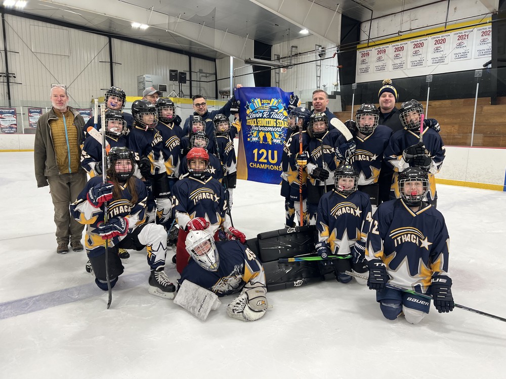 ITHACA, NY -- Playing at home in the 25th annual Kevin R. Talty Shooting Stars Tournament, the 12U Stars defeated the Lady Patriots and the Skaneateles Lakers but lost to the Buffalo Lady Shamrocks in the round robin, which set the stage for a rematch against the Lady 'Rocks in the championship game. This time, the Stars controlled the game from start to finish and skated off with a 5-1 victory. Congratulations to the 12U team on bringing home the banner!
